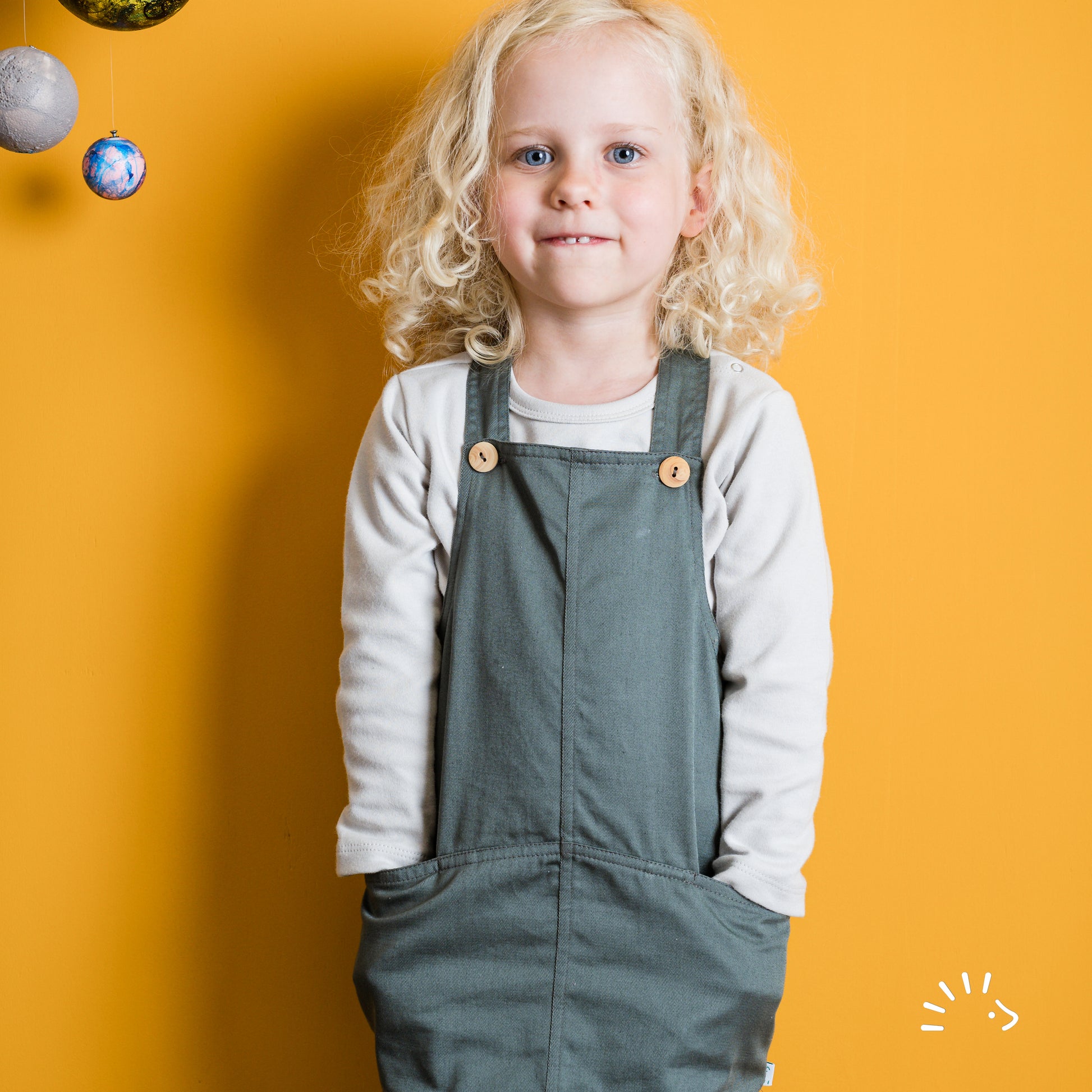 Der Latzkleid ist aus zertifiziertem Baumwolltwill gefertigt. Dieses Kleid ist besonders vielseitig, da es durch das Kombinieren mit unterschiedlichen Tops und Unterteilen optimal an Anlass und Witterung anpassbar ist! Mit bequemem Schnitt, Taschen und verstellbaren Knöpfen an den Trägern. Knöpfe aus echtem Buchsbaumholz.